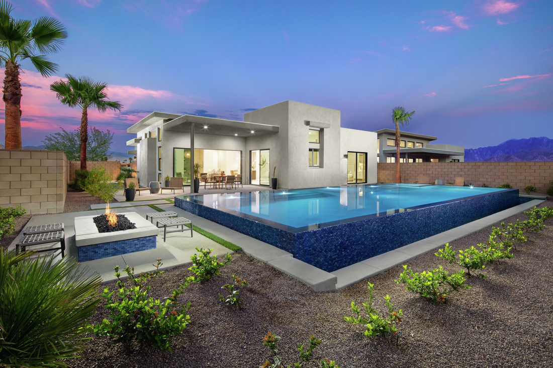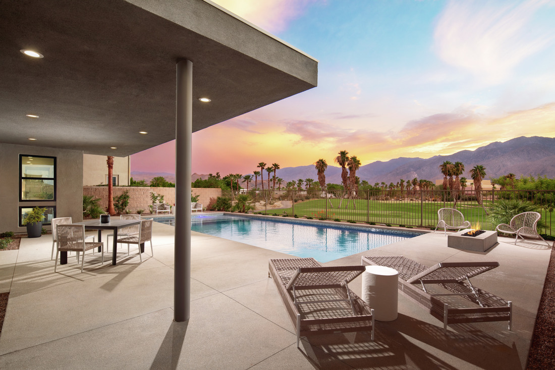 Toll Brothers at Escena offers four single-story home designs ranging from 2,559 to 2,700+ square feet of luxury living space with 2 to 3 bedrooms, 2.5 to 3.5 baths, attached 2-car garages, and an included pool and spa. The inspiring contemporary, international, and mid-century home exteriors complement the open-concept home designs and desert setting. Home prices start at $1.36 million.